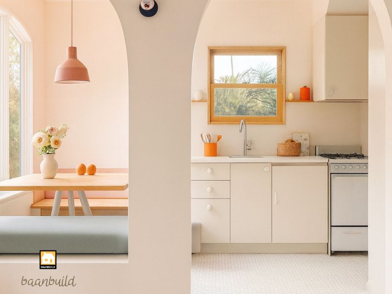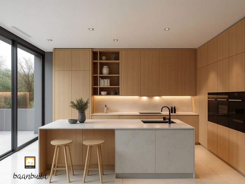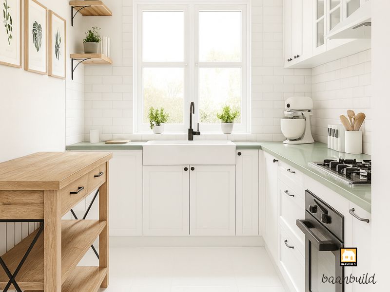 ครัวที่สว่างจากแสงธรรมชาติ ช่วยให้บ้านดูดีขึ้นทันทีแบบไม่ต้องตกแต่งอะไรเพิ่มเลยค่ะ การทำช่องแสง หน้าต่างบานใหญ่ หรือใส่ skylight บนหลังคา จะทำให้ครัวไม่อับ ไม่มืด และให้ความรู้สึก “สดใหม่” ทุกครั้งที่เดินเข้าไป