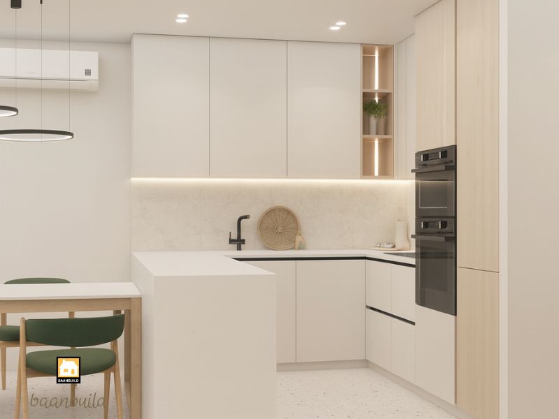 ลองนึกภาพ ต่อเติมครัวมินิมอล พื้นที่ครัวขาวสะอาด ผนังเรียบตา ตู้ครัวบิวท์อินเนียนไปกับผนัง ทุกอย่างถูกจัดไว้อย่างพอดี ไม่มีของวางเกะกะจนรกสายตา… แค่เดินเข้ามาก็รู้สึกผ่อนคลาย เหมือนครัวนี้ช่วยลดความวุ่นวายในชีวิตไปครึ่งหนึ่งแล้ว